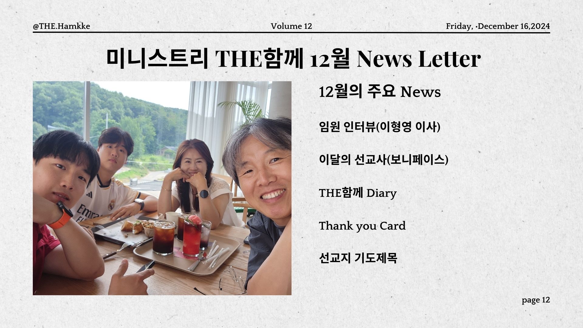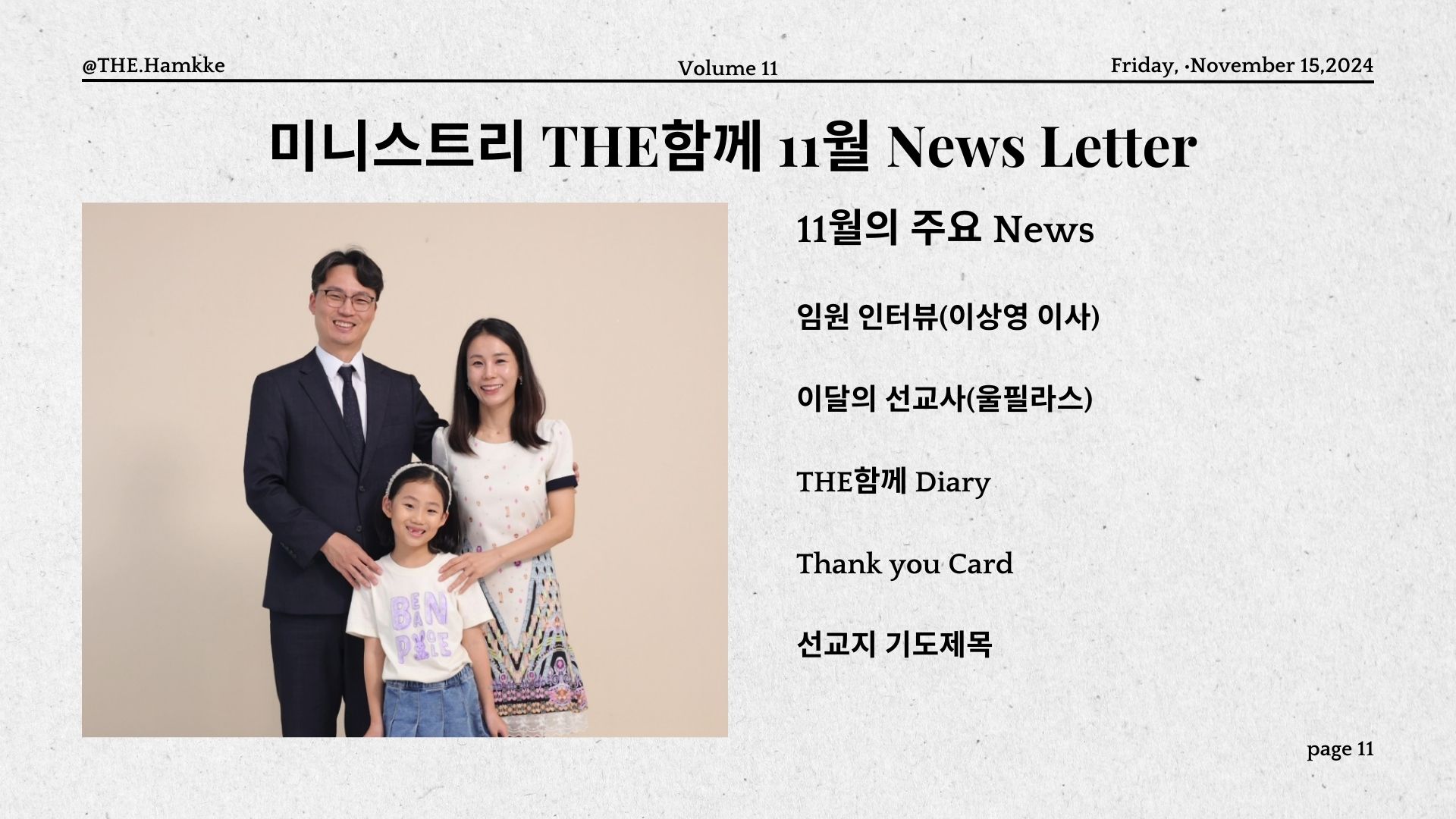 임원 인터뷰(이형영 이사) / 이달의 선교사(보니페이스) / THE함께 Diary / 선교지 기도제목